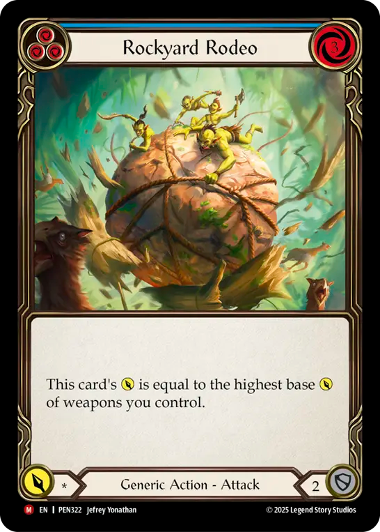 This card's {p} is equal to the highest base {p} of weapons you control.