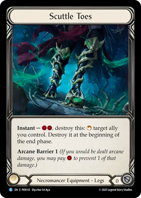Instant - {r}{r}, destroy this: {u} target ally you control. Destroy it at the beginning of the end phase.