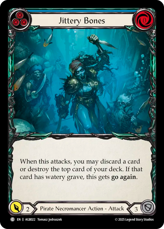 When this attacks, you may discard a card or destroy the top card of your deck. If that card has watery grave, this gets go again.