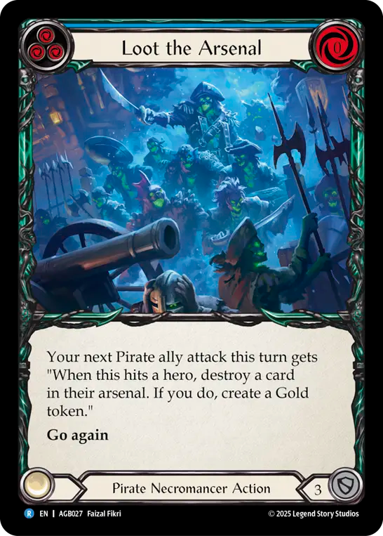 Your next Pirate ally attack this turn gets "When this hits a hero, destroy a card in their arsenal. If you do, create a Gold token."