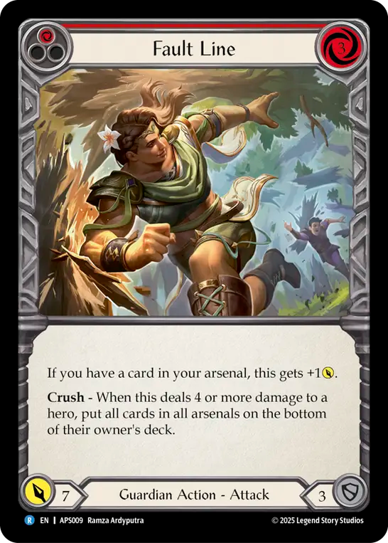 Crush - When this deals 4 or more damage to a hero, put all cards in all arsenals on the bottom of their owner's deck.