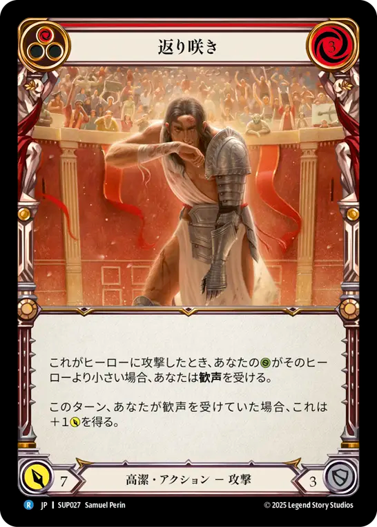 When this attacks a hero, if you have less {h} than them, the crowd cheers you.
