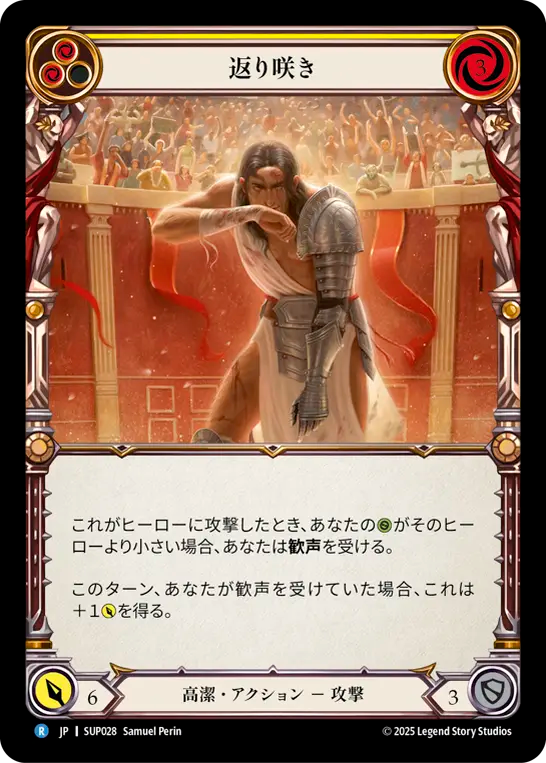 When this attacks a hero, if you have less {h} than them, the crowd cheers you.