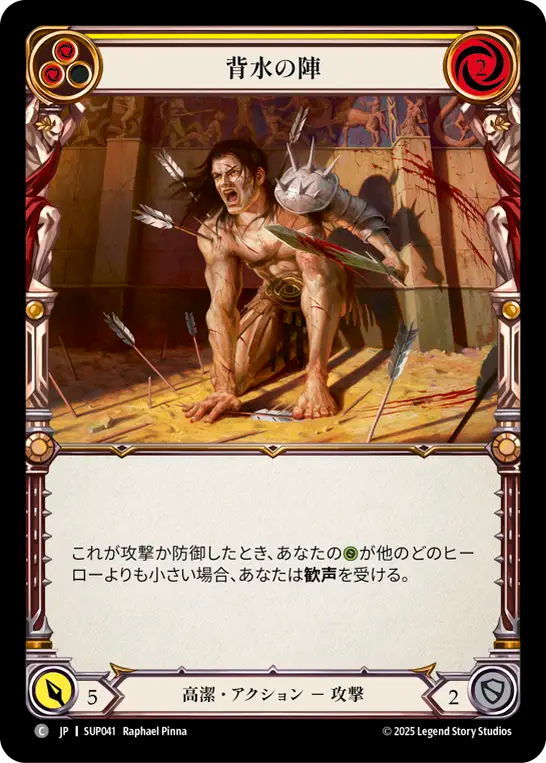 When this attacks or defends, if you have less {h} than each other hero, the crowd cheers you.