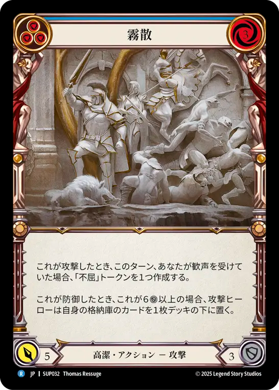 When this defends, if it has 6 or more {d}, the attacking hero puts a card from their hand on the bottom of their deck.