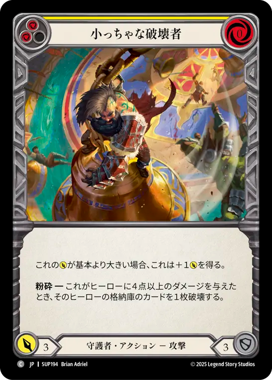 Crush - When this deals 4 or more damage to a hero, destroy a card in their arsenal.