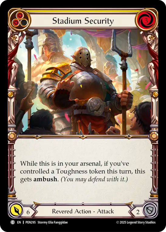 While this is in your arsenal, if you've controlled a Toughness token this turn, this gets ambush.